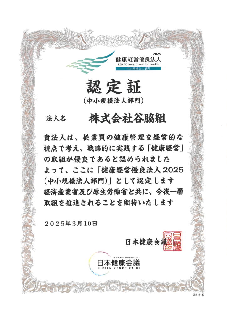 弊社では、本年度も2022年より引き続き経済産業省より『健康経優良法人2025』(中小規模法人部門)に認定されました。