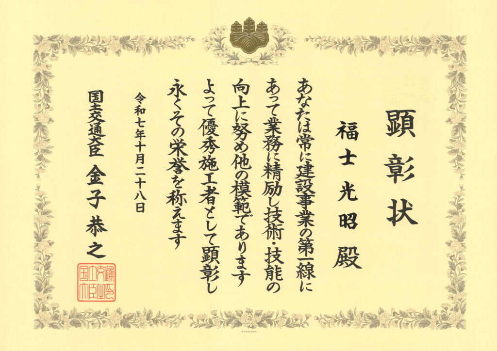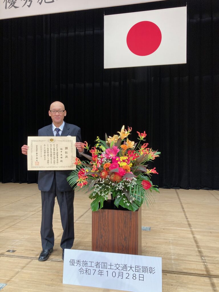 『令和7年度優秀施工者国土大臣顕彰(建設マスター)を受賞いたしました。