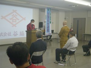 本年も昨年度同様、新型コロナウイルス感染拡大防止のため、弊社社員40名の参加により労働災害の防止・安全運転の徹底について再確認をし、今後の繁忙期を無事故・無災害で終えられるよう、日々の行動に万全を期す決意を新たにいたしました。