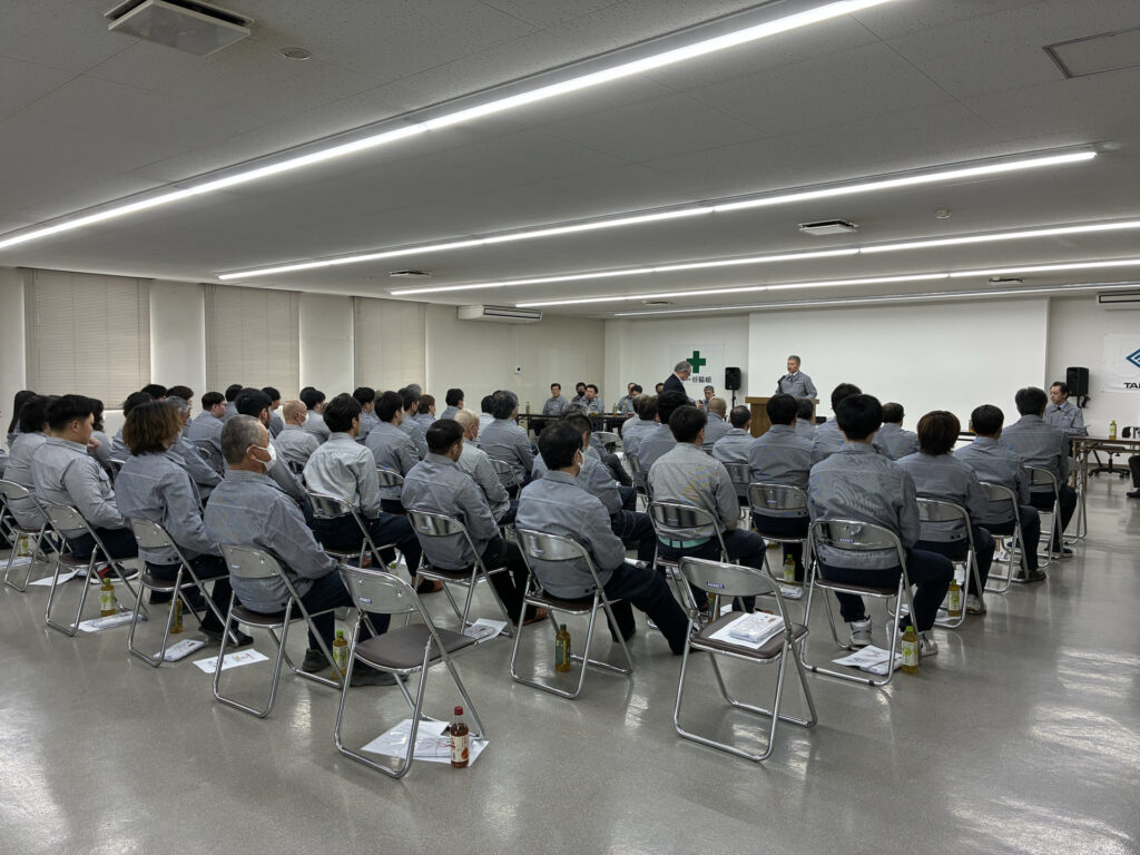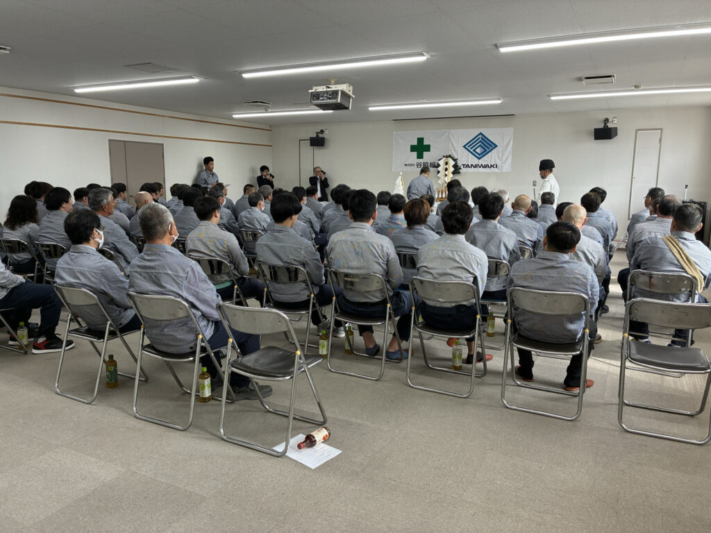 さらなる安全意識の向上と無災害を願い、4月10日(金)に弊社社員・従業員70名の参加のもと、「安全祈願祭」および「安全大会」を実施しました。